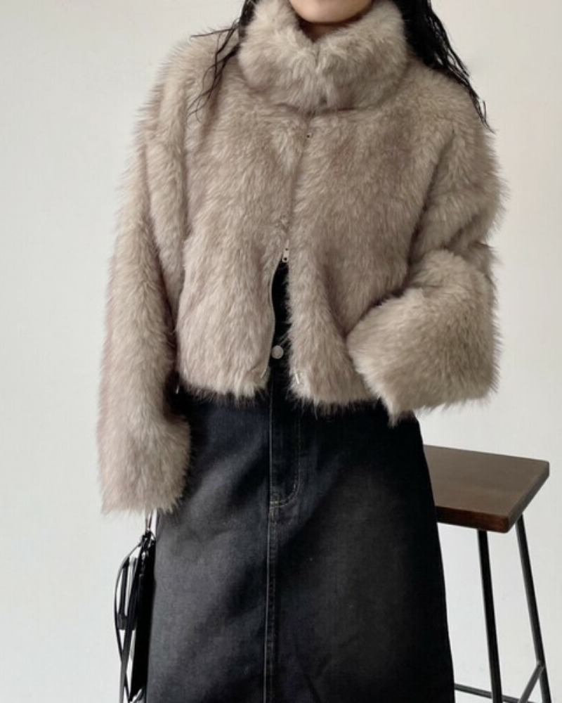 ✨推薦商品:仿皮草短版雙拉鍊外套 六色 / 雙摺寬版修身長褲 三色